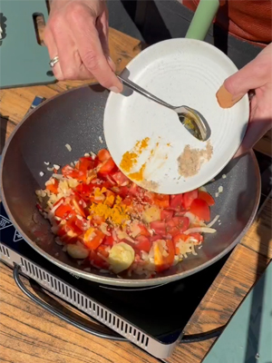 4. Breng het geheel op smaak met de kurkuma, de bouillonpoeder en zout en peper