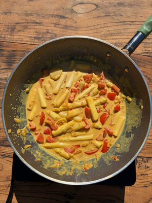 • 1 rode paprika, zaadjes verwijderd en in blokken gesneden