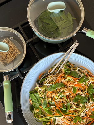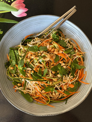 - 160 gr volkoren noedels, bereid volgens gebruiksaanwijzing op de verpakking