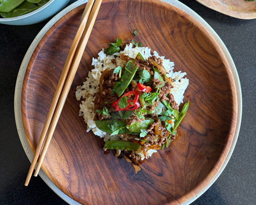 Thaise roerbak met rundergehakt en rijst, smakelijk en snel